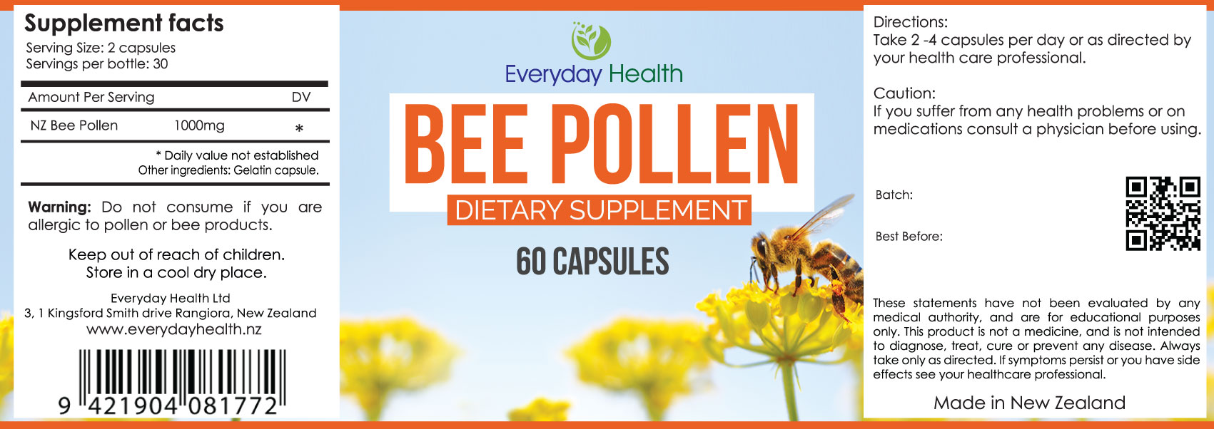 Each capsule contains 500mg of dried New Zealand bee pollen granules.