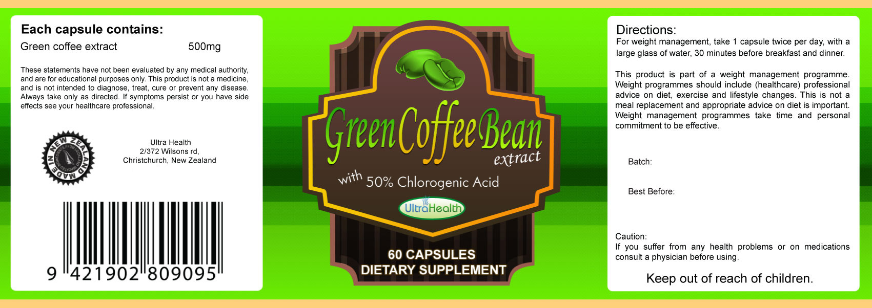 Each gelatine capsule contains 500mg Green coffee extract, standardised to 50% Chlorogenic acid, and 5% caffeine.