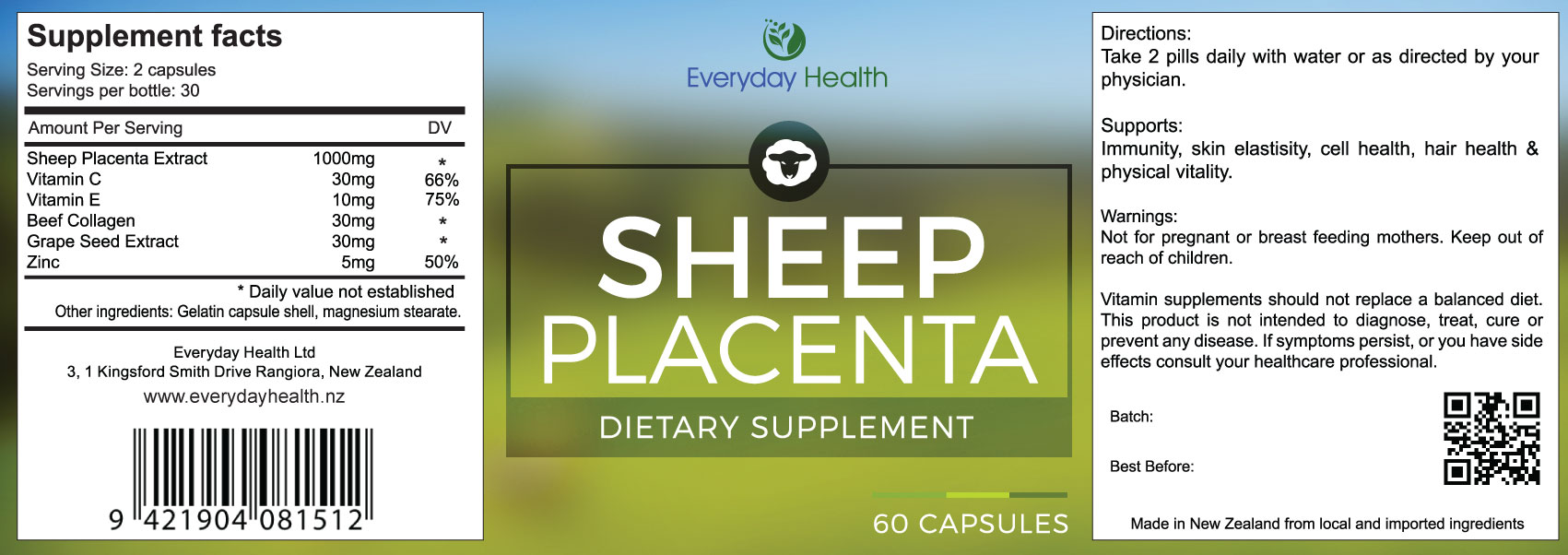 Our Sheep Placenta capsules, have been fortified with Vitamin E & C, Zinc, Collagen, and Grape seed extract,